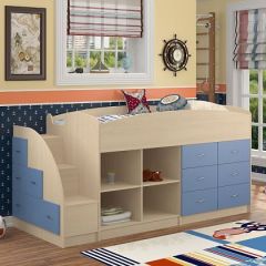 Кровать-чердак "Дюймовочка-4.1"  Дуб молочный/Голубой | фото