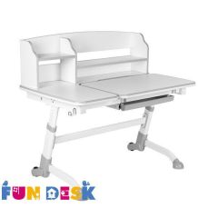 Регулируемая детская парта FunDesk Amare II – эргономичный, регулируемый по высоте, с современным дизайном и навесной полкой стол для вашего ребенка. Наличие полок над столешницей увеличивает рабочее пространство, создавая дополнительное место для хранения книг и канцелярских принадлежностей. Наклоняемая до 25° рабочая поверхность дает возможность выбрать максимально удобный угол наклона для письма, чтения и рисования. Антибликовое покрытие столешницы защищает глаза вашего ребенка от усталости. Благодаря многоступенчатому механизму регулировки высоты парта «растет» вместе с вашим ребенком. Наличие колесиков позволяет легко перемещать парту, не повреждая пол.