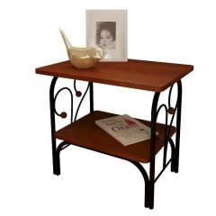 Тумба прикроватная "Версаль" с коваными элементами, черная (полки-орех)