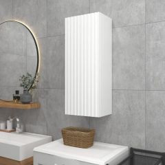Белый шкаф с рифлёным фасадом будет отлично и стильно смотреться как в ванной, так и в туалете.